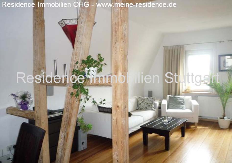 Stuttgart Zuffenhausen | Wohnungen | ca. 94m² | 3 ZimmerBereits beim Betreten begeistert die Wohnung mit ihrem ganz eigenen Charme und einem außergewöhnlichen Flair. Schöner alter Dielenboden, freigelegte Holzbalken als Raumteiler und ein Kaminofen schaffen eine einmalige Wohlfühlatmosphäre. In diesem Zuhause können Sie gemütlich entspannen, oder Sie begeben sich auf die Dachterrasse und genießen den tollen Ausblick.