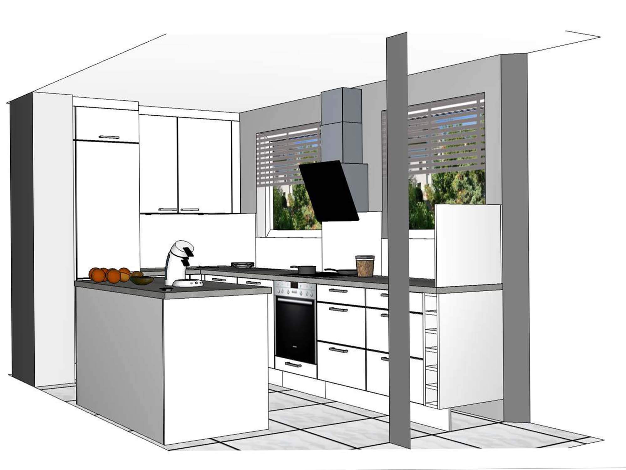 Gebäude - Mietwohnung Stuttgart Nord Grundriss - Mietwohnung - Stuttgart Nord Visualisierung Einbauküche - Mietwohnung - Stuttgart Nord